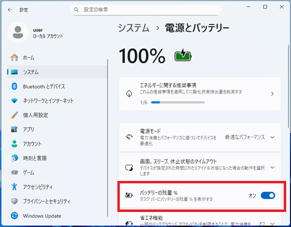 本記事では、Windows11でタスクバーのバッテリー残量表示を%にする方法を解説します。