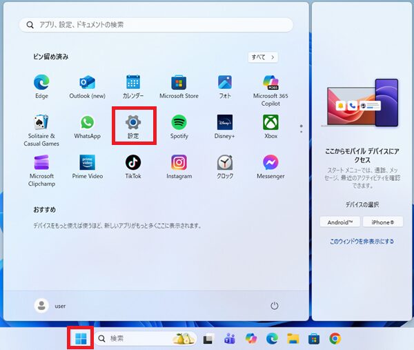 Windows11|スタートメニューの「モバイル デバイスにアクセス」を非表示にする方法