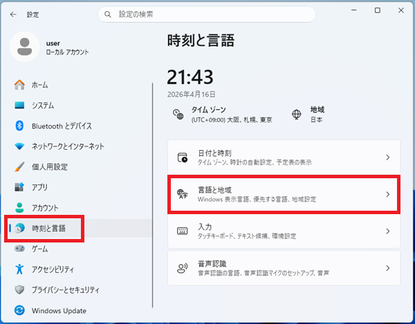 言語設定が正しくない場合、IMEが正常に動作しません。